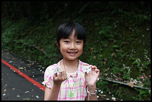 看Wendy寶貝巳開心迫不及待的撿起了剛落下的花呢.....