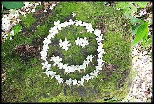 而一路上都可以看到遊客貼心的用花來做出可愛的圖案....
