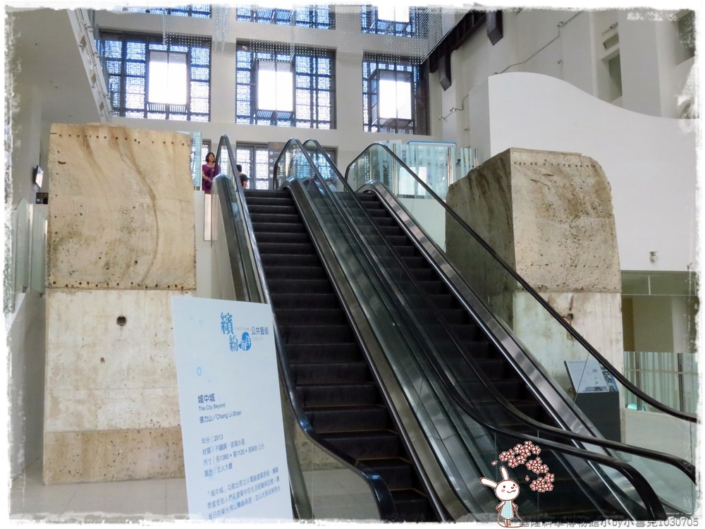 走手扶梯發現兩旁有著又高又大的水泥柱....