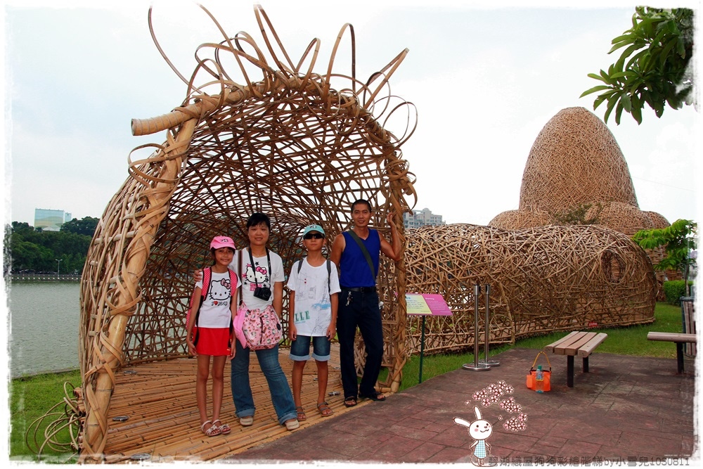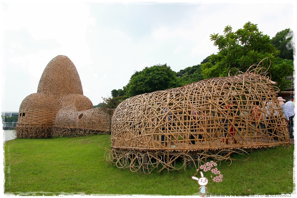 內湖碧湖公園首次展出地景公共藝術!知名地景藝術家王文志應邀,利用四千根竹子,耗時一個半月,打造坐落於湖畔的「碧湖織屋」,一次能承載六十到七十人入內參觀,展期從六月廿一日至年底。