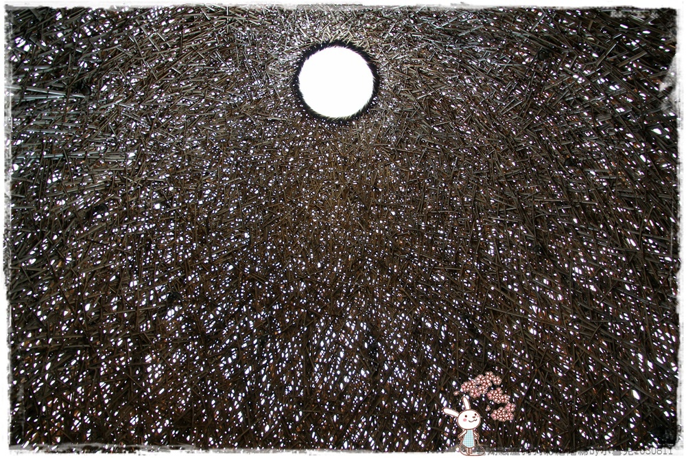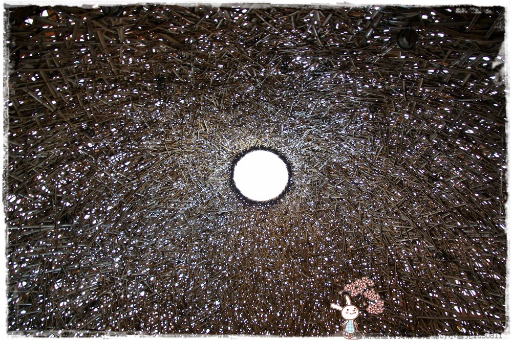 最頂端有個圓形的圓形天窗,代表「天圓地方」