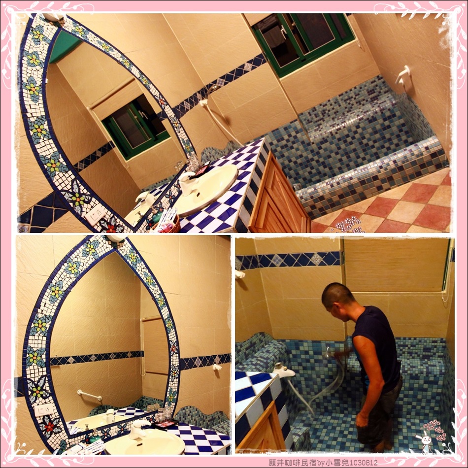 浴室裡還有一面好大好大磁磚拼湊而成的鏡子.......
