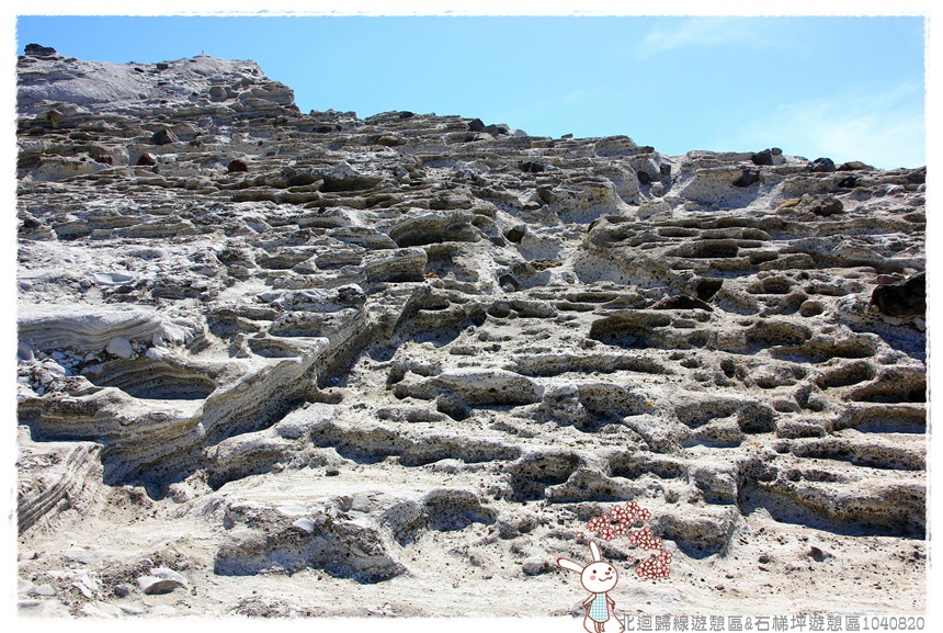 這是石梯坪著名景觀之一,17公尺高的單面山,呈現石梯坪火山、海蝕、風蝕等交互作用下獨特的地質與地形面貌。(資料網路搜尋)