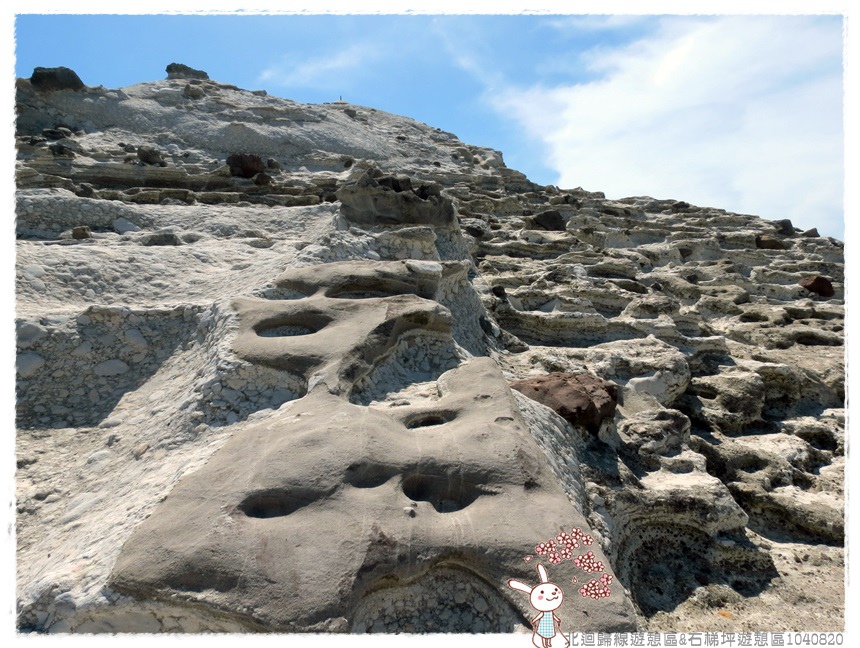 石梯坪位在花蓮縣豐濱鄉石梯灣的南側尾端,整個區域是一個面積極大的海岸階地,海蝕地形十分發達,海蝕平台、隆起珊瑚礁、海蝕溝、海蝕崖等觸目皆是,尤其是壺穴景觀更是堪稱台灣第一。(資料網路搜尋)